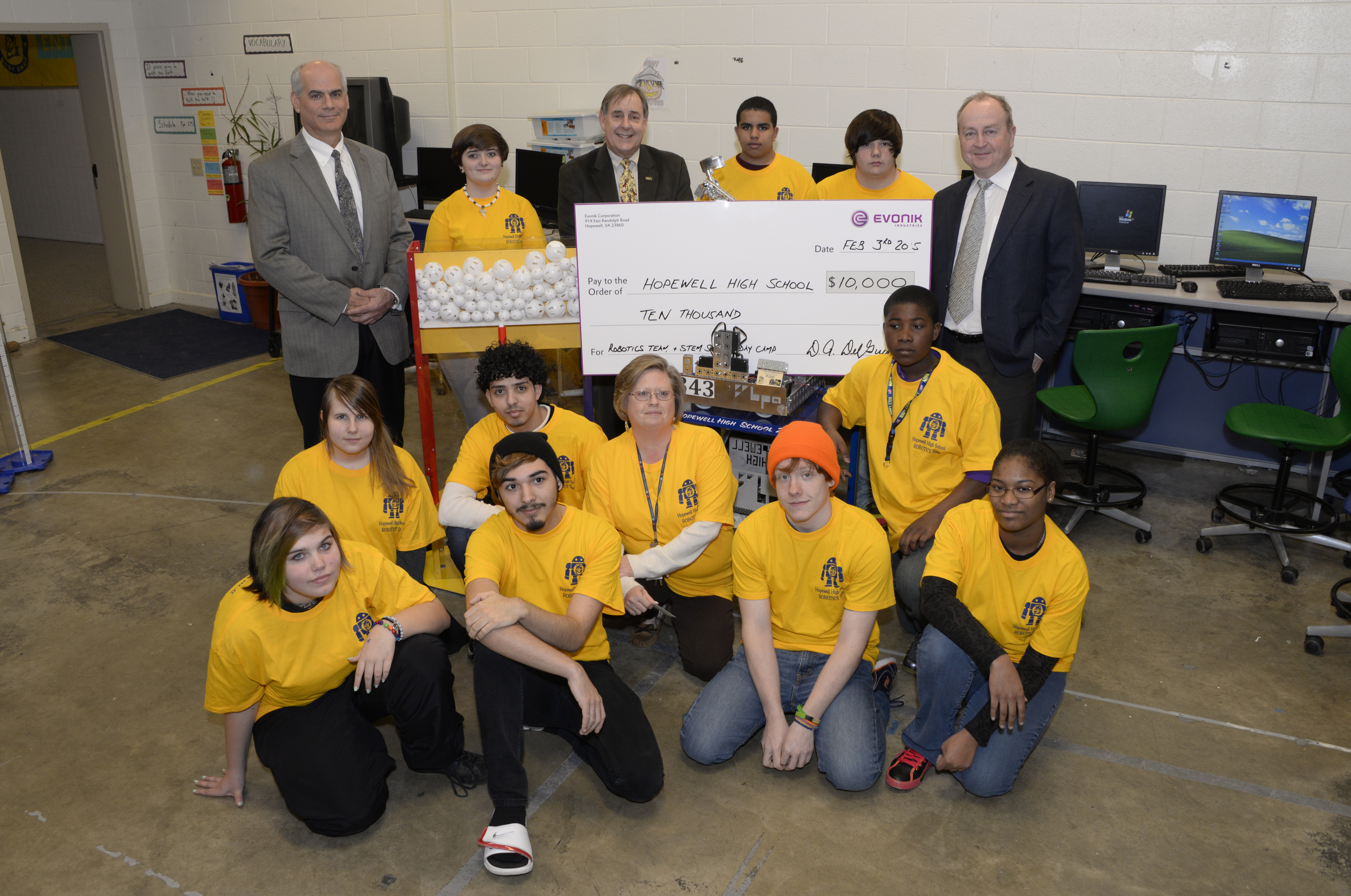 Evonik Corporation, one of Hopewell’s major employers, today donated $10,000 to Hopewell City Public Schools to support the Hopewell High School robotics team and the STEM Summer Day Camp.