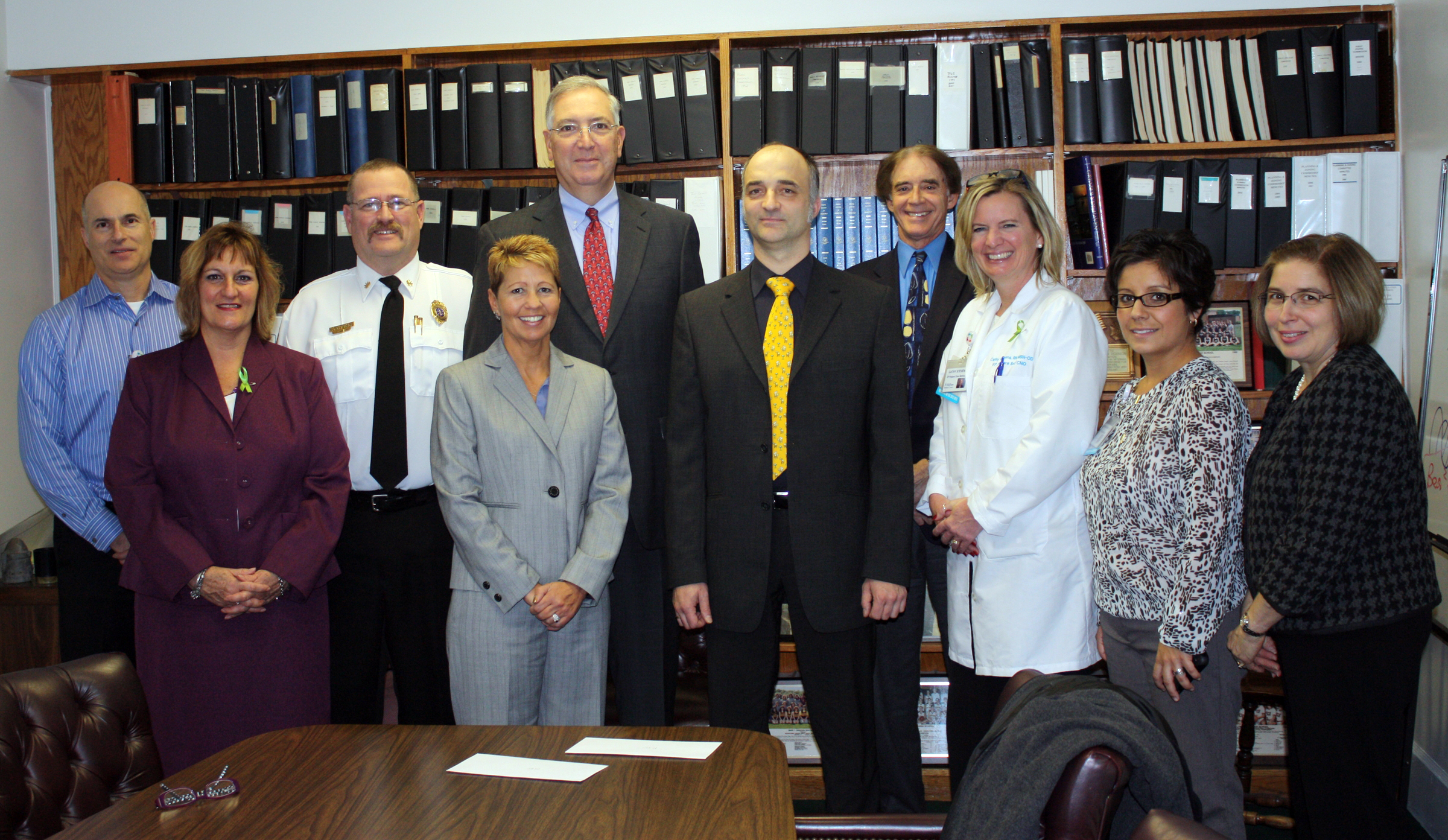Deputy Chief Richard Heidgerd of Wallingford’s Fire Department, Chief Douglas Dortenzio of Wallingford’s Police Department, Susan McGaughan of MidState Medical Center, and Eloise Hazlewood of the Wallingford Medical Reserve Corps accepted the donation checks on behalf of their organizations.