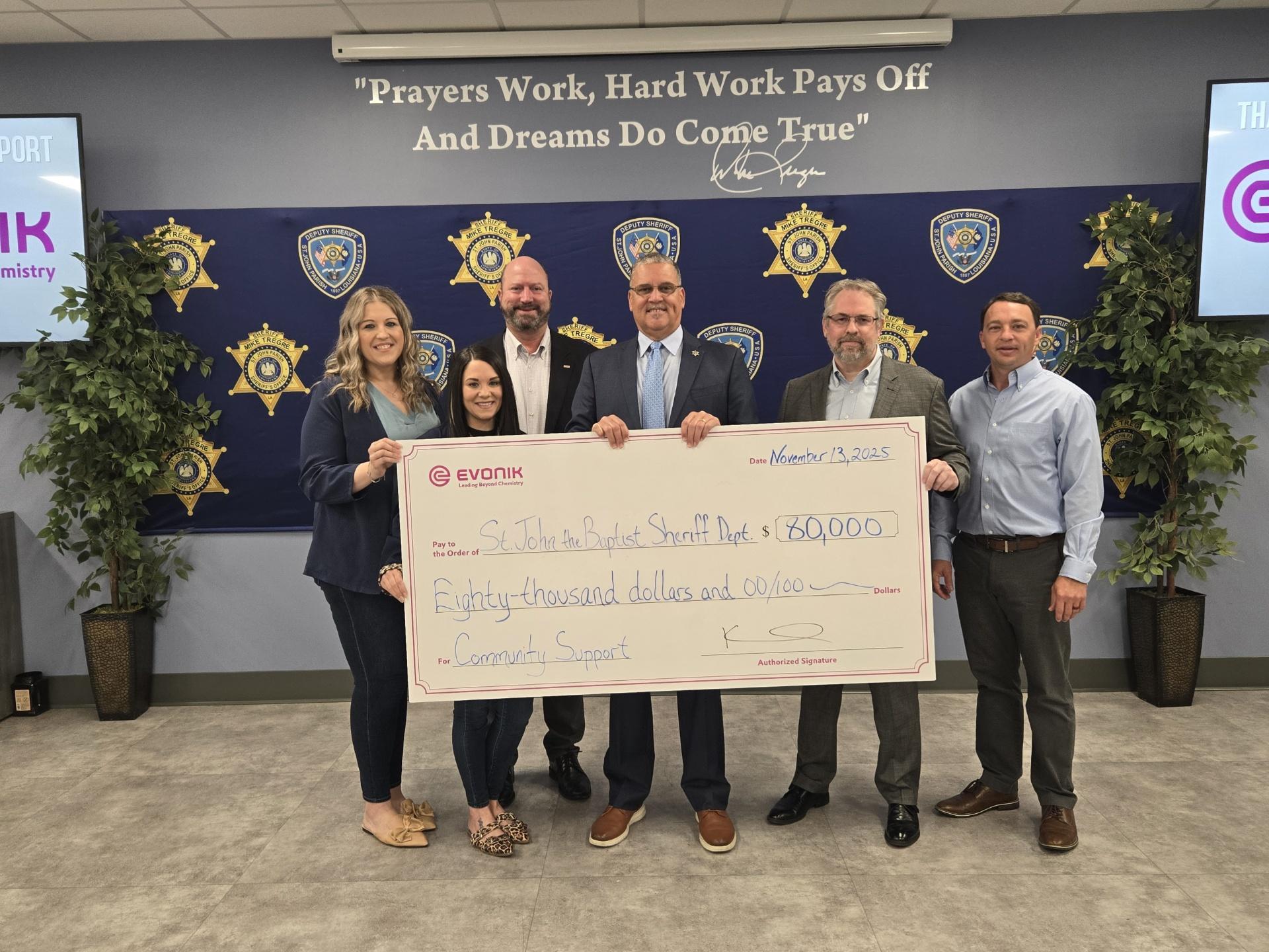 Evonik, one of the world's leading specialty chemicals companies, has donated $80,000 to the St. John the Baptist Parish Sheriff’s Office in LaPlace, Louisiana. The contribution will fund technology advancements, officer training, and community outreach to strengthen law enforcement and public safety throughout the region.