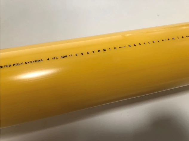 VESTAMID® NRG thermoplastic was developed specifically for manufacturing industrial pipes of varying diameters. Further, VESTAMID® NRG is approved for use in gas distribution piping through regulations issued by the Pipeline and Hazardous Materials Safety Administration (PHMSA), which recently updated the Federal Pipeline Safety Regulations standards for plastic piping systems.